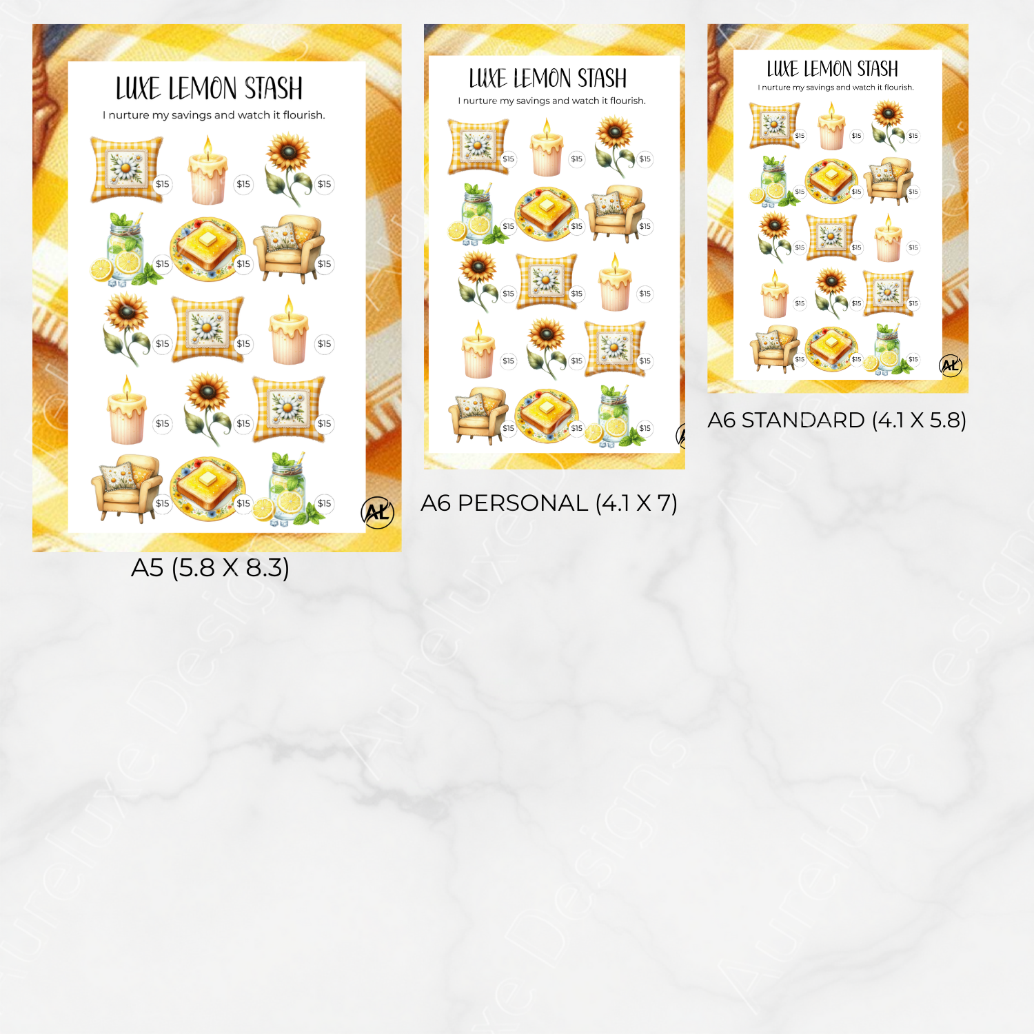 • 8 Coordinated Luxe Lemon savings challenge cards