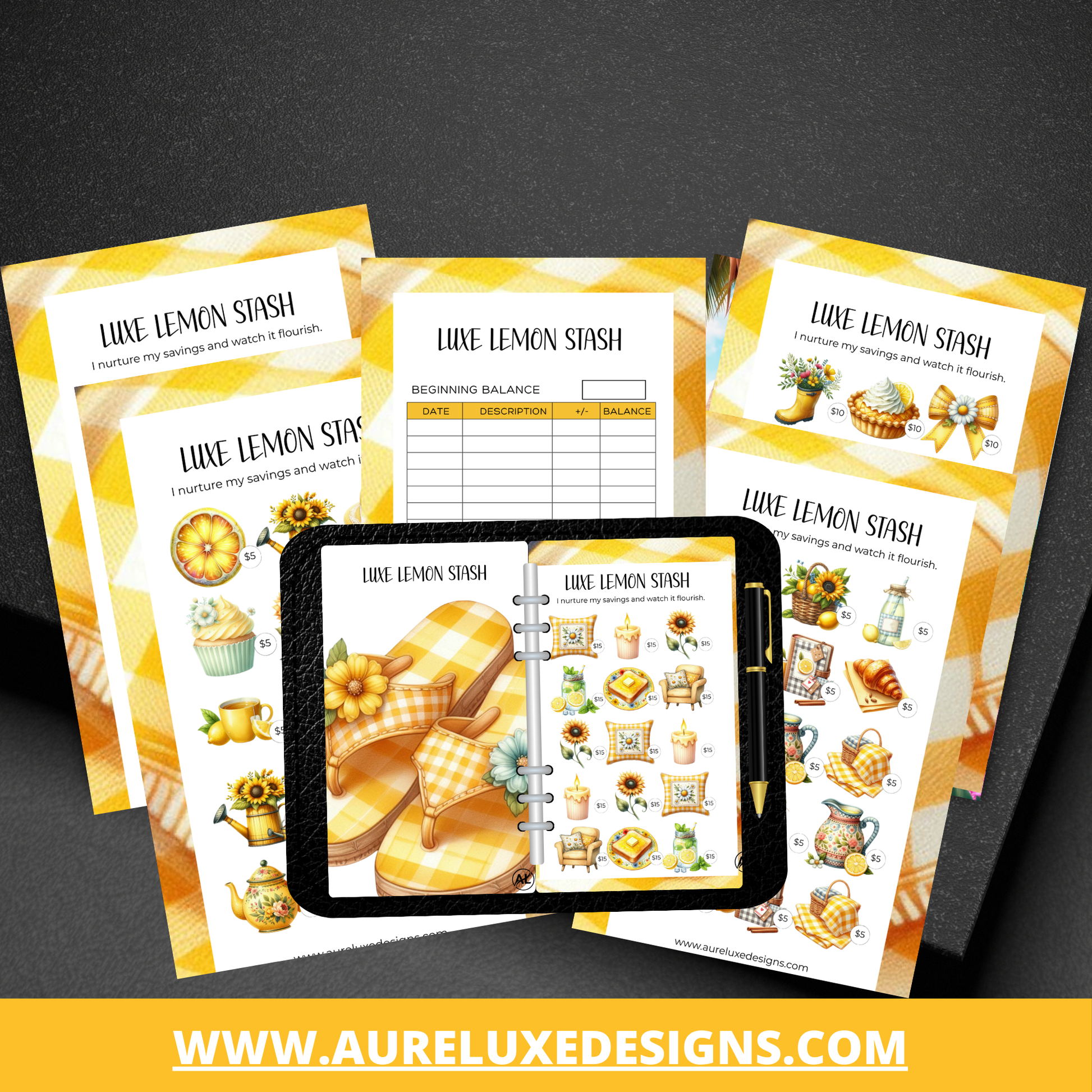The Luxe Lemon Stash 8-Piece Set was designed to bring brightness to your budgeting routine — structured savings wrapped in bold, refreshing design.