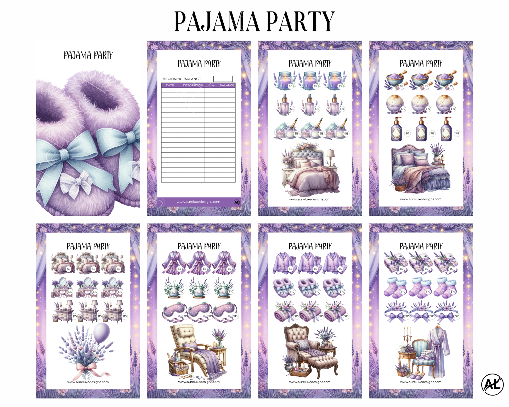 The Pajama Party 8-Piece Set was created for the woman who loves cozy nights, self-care rituals, girls’ nights in, and little luxuries — without blowing her budget.
